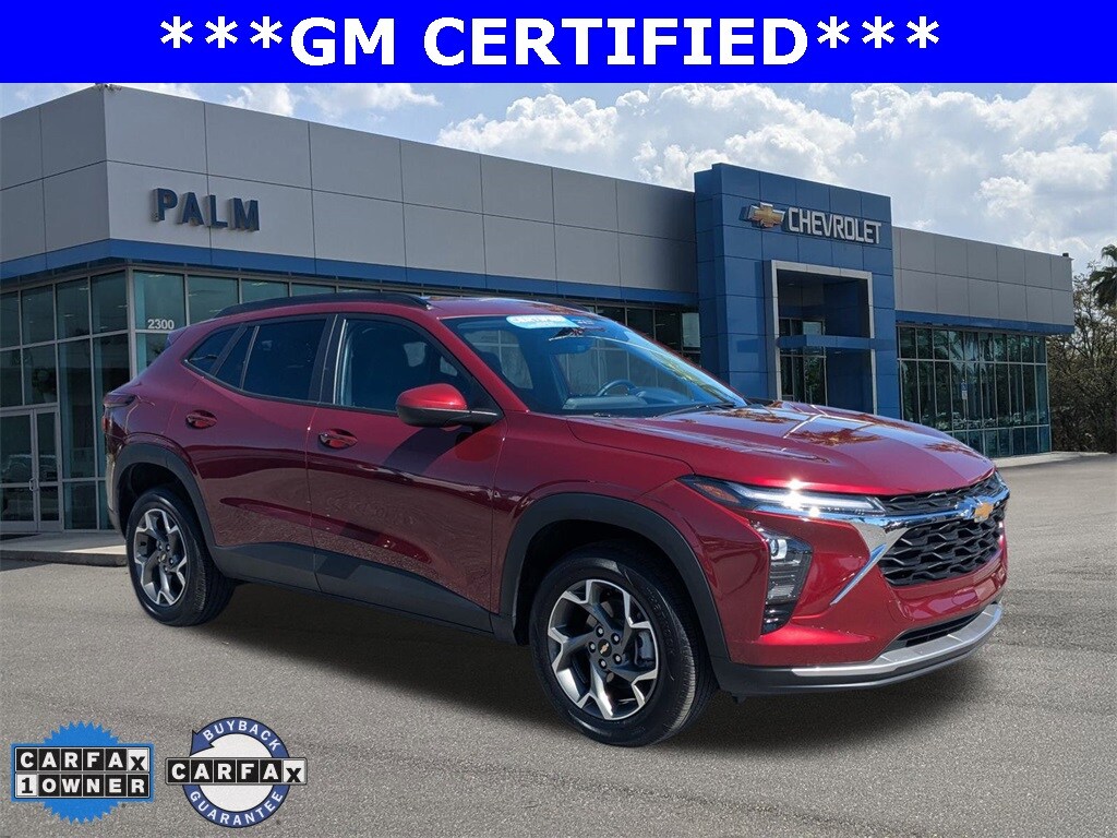 Clean CARFAX. Certified. This 2025 Chevrolet Trax LT in Crimson features: FWD ONE OWNER, Trax LT, 4D Sport Utility, 1.2L I3 DI Turbocharged DOHC 12V LEV3-ULEV70 137hp, 6-Speed Automatic, FWD, Crimson, Jet Black With Blue Accents Cloth, 6-Speaker Audio System Feature, Exterior Parking Camera Rear, Front Doors Keyless Open, Heated Driver and Front Passenger Seats, Heated Power-Adjustable Outside Mirrors, Heated Steering Wheel, LT Convenience Package, Preferred Equipment Group 1LT, Radio: AM/FM Stereo Audio System, Remote keyless entry, SiriusXM Trial Subscription, Wheels: 17 Inch Gray-Painted Machined Aluminum Alloy, Wrapped Steering Wheel. CARFAX One-Owner.