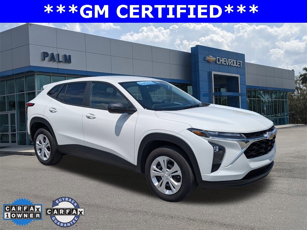 Clean CARFAX. Certified. This 2025 Chevrolet Trax LS in Summit White features: FWD ONE OWNER, Trax LS, 4D Sport Utility, 1.2L Ecotec Turbo DOHC DI w/VVT, 6-Speed Automatic, FWD, Summit White, Jet Black/Gray With Blue Accents Cloth, 4-Speaker Audio System Feature, Driver Confidence Package, Exterior Parking Camera Rear, Lane Change Alert w/Side Blind Zone Alert, Preferred Equipment Group 1LS, Radio: Chevrolet Infotainment 3 System w/AM/FM, Rear Cross-Traffic Alert, Rear Park Assist, Remote keyless entry, SiriusXM Trial Subscription. CARFAX One-Owner.