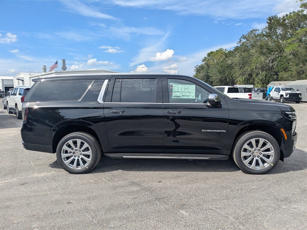 Suburban Premier, 4D Sport Utility, EcoTec3 6.2L V8, 10-Speed Automatic with Overdrive, RWD, Jet Black Leather, 15" Diagonal Multi-Color Head-Up Display, 1st & 2nd Rows Premium Floor Liners (LPO), 3rd Row 60/40 Power-Folding Split-Bench, 3rd Row All-Weather Floor Liners (LPO), 4-Way Power Driver Lumbar Seat Adjuster, 4-Way Power Front Passenger Lumbar Seat Adjuster, 8-Way Power Driver Seat Adjuster, 8-Way Power Front Passenger Seat Adjuster, Advanced Security Package, Advanced Trailering Package, All-Weather Cargo Mat (LPO), Auto-Dimming Inside Rear-View Mirror, AutoSense Hands-Free Power Liftgate, Blind Zone Steering Assist w/Trailering, Bose 10-Speaker Surround w/CenterPoint, Bright Front & Rear Door Sill Plates, Chrome Door Handles w/Body-Color Strip, Chrome Mirror Caps, Dual Exhaust System, Dual-Pane Power Panoramic Sunroof, Exterior Parking Camera Rear, Front LED Fog Lamps, Glass Breakage Sensor, Heated 2nd Row Outboard Seats, Heated Driver & Front Passenger Seats, Heated Power-Adjustable Outside Mirrors, Heated Steering Wheel, Hitch View w/Pan/Zoom Image Adjustment, Inside Rearview Auto-Dimming Rear Camera Mirror, Integrated Trailer Brake Controller, LED Headlamps w/LED Daytime Running Lamps, LED Tail Lamps, Max Trailering Package, Memory Settings, Perforated Heated & Ventilated Seats, Power Release 2nd Row Bucket Seats, Power Tilt & Telescopic Steering Column, Power-Sliding Center Floor Console, Preferred Equipment Group 1LZ, Premium Liner Protection Package (LPO) (DISC), Radio: 17.7" Diagonal Advanced Color LCD Display, Rear Power Liftgate, Rear Seat Media System, Remote keyless entry, Self-Powered Horn Theft-Deterrent Alarm System, SiriusXM w/360L Trial Subscription, Smart Trailer Integration Indicator, Technology & Entertainment Package, Technology Package, Universal Home Remote, Vehicle Inclination Sensor, Vehicle Interior Movement Sensor, Wheel Locks (Set of 4) (LPO), Wheels: 22" x 9" Manoogian Silver Painted Alum, Wireless Apple CarPlay/Wireless Android Auto, Wireless Phone Charging. RWD