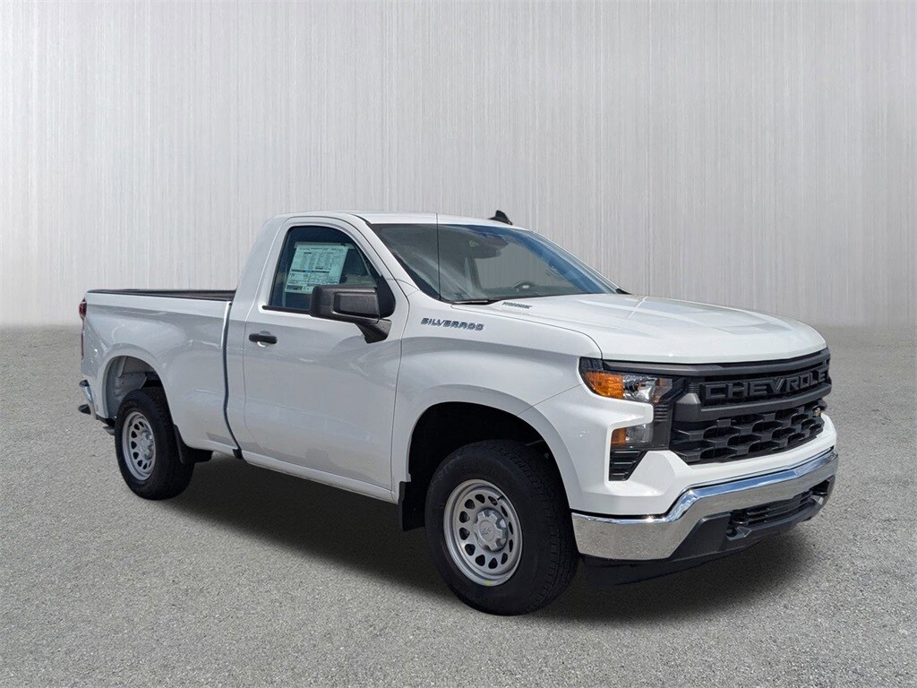 Silverado 1500 WT, 2D Standard Cab, 2.7L I4 Turbocharged DOHC 16V LEV3-SULEV30 310hp, 8-Speed Automatic, RWD, Jet Black Vinyl, 3.5" Monochromatic Display Driver Info Center, 4-Way Manual Driver Seat Adjuster, 40/20/40 Front Split Bench Seat, Black (Semi-Gloss) Front Bumper, Black (Semi-Gloss) Rear Bumper, Bluetooth® For Phone, Deep-Tinted Glass, Electric Rear-Window Defogger, Electronic Cruise Control, Front Frame-Mounted Black Recovery Hooks, HD Rear Vision Camera, Heated Power-Adjustable Outside Mirrors, Hitch Guidance, Inside Rearview Mirror with Tilt, Locking Tailgate, Manual Tailgate Function with No EZ Lift, Manual Tilt Wheel Steering Column, OnStar Services Capable, Power Front Windows with Driver Express Up/Down, Power Front Windows with Passenger Express Down, Preferred Equipment Group 1WT, Remote Keyless Entry, Rubberized-Vinyl Floor Covering, SiriusXM Delete, Solar Absorbing Tinted Glass, Standard Tailgate, Teen Driver, Tire Pressure Monitoring System, Trailering Package, Vinyl Seat Trim, Wheels: 17" x 8" Ultra Silver Painted Steel, Wi-Fi Hot Spot Capable, WT Convenience Package, WT Value Package. RWD