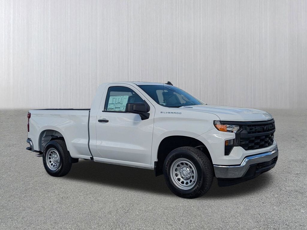 Silverado 1500 WT, 2D Standard Cab, 2.7L I4 Turbocharged DOHC 16V LEV3-SULEV30 310hp, 8-Speed Automatic, RWD, Jet Black Vinyl, 3.5" Monochromatic Display Driver Info Center, 4-Way Manual Driver Seat Adjuster, 40/20/40 Front Split Bench Seat, Black (Semi-Gloss) Front Bumper, Black (Semi-Gloss) Rear Bumper, Bluetooth® For Phone, Deep-Tinted Glass, Electric Rear-Window Defogger, Electronic Cruise Control, Front Frame-Mounted Black Recovery Hooks, HD Rear Vision Camera, Heated Power-Adjustable Outside Mirrors, Hitch Guidance, Inside Rearview Mirror with Tilt, Locking Tailgate, Manual Tailgate Function with No EZ Lift, Manual Tilt Wheel Steering Column, OnStar Services Capable, Power Front Windows with Driver Express Up/Down, Power Front Windows with Passenger Express Down, Preferred Equipment Group 1WT, Remote Keyless Entry, Rubberized-Vinyl Floor Covering, SiriusXM Delete, Solar Absorbing Tinted Glass, Standard Tailgate, Teen Driver, Tire Pressure Monitoring System, Trailering Package, Vinyl Seat Trim, Wheels: 17" x 8" Ultra Silver Painted Steel, Wi-Fi Hot Spot Capable, WT Convenience Package, WT Value Package. RWD