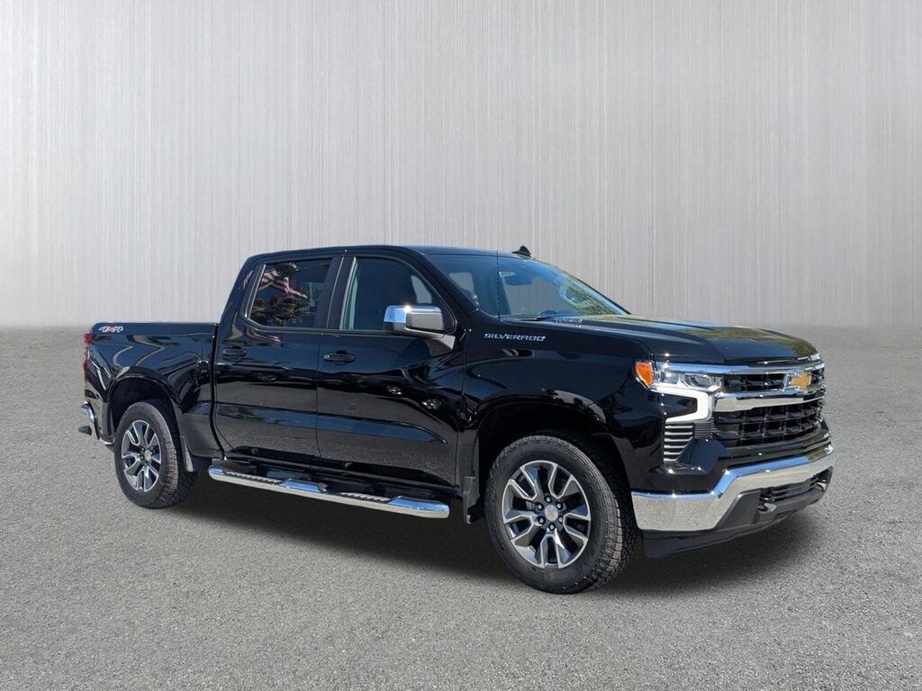 Silverado 1500 LT, 4D Crew Cab, 3.0L I6, 10-Speed Automatic, 4WD, Jet Black Leather, 10-Way Power Driver Seat with Lumbar, 12.3" Multicolor Reconfigurable Digital Display, 120-Volt Bed Mounted Power Outlet, 120-Volt Interior Power Outlet, 40/20/40 Front Split-Bench Seat, All-Star Edition, Auto-Locking Rear Differential, Bluetooth® For Phone, Chevytec Spray-on Black Bedliner, Chrome Mirror Caps, Cloth Seat Trim, Color-Keyed Carpeting Floor Covering, Convenience Package, Convenience Package II, Deep-Tinted Glass, Dual Rear USB Ports (charge Only), Dual-Zone Automatic Climate Control, Electric Rear-Window Defogger, Electronic Cruise Control, EZ Lift Power Lock and Release Tailgate, Front Frame-Mounted Black Recovery Hooks, Front Rubberized Vinyl Floor Mats, HD Rear Vision Camera, Heated Driver and Front Outboard Passenger Seats, Heated Power-Adjustable Outside Mirrors, Heated Steering Wheel, Hitch Guidance, Hitch Guidance with Hitch View, in-Vehicle Trailering System App, Inside Rearview Mirror with Tilt, Integrated Trailer Brake Controller, Keyless Open and Start, Leather Package, Leather-Appointed Front Seat Trim, LED Cargo Area Lighting, Manual Tilt/Telescoping Steering Column, OnStar Services Capable, Power Front Windows with Driver Express Up/Down, Power Front Windows with Passenger Express Down, Power Rear Windows with Express Down, Power Sliding Rear Window with Rear Defogger, Preferred Equipment Group 1LT, Protection Package, Rear 60/40 Folding Bench Seat (folds Up), Rear Rubberized-Vinyl Floor Mats, Rear Wheelhouse Liners, Remote Start Package, Remote Vehicle Starter System, SiriusXM with 360L Trial Subscription, Standard Tailgate, Steering Wheel Audio Controls, Teen Driver, Theft Deterrent System (unauthorized Entry), Tire Pressure Monitoring System, Trailering Package, Universal Home Remote, Up-Level Rear Seat with Storage Package, Wheels: 17" x 8" Bright Silver Painted Aluminum, Wi-Fi Hot Spot Capable, Wrapped Steering Wheel. 4WD