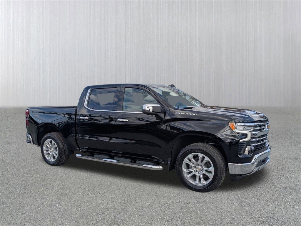 Silverado 1500 LTZ, 4D Crew Cab, EcoTec3 5.3L V8, 10-Speed Automatic, RWD, Jet Black Leather, 10-Way Power Driver Seat with Lumbar, 10-Way Power Passenger Seat Adjuster with Lumbar, 12.3" Multicolor Reconfigurable Digital Display, 120-Volt Bed Mounted Power Outlet, 120-Volt Interior Power Outlet, 2 USB Data Ports, 2nd Row Heated Outboard Seats, Auto-Dimming Inside Rear-View Mirror, Auto-Locking Rear Differential, Bluetooth® For Phone, Chrome Mirror Caps, Color-Keyed Carpeting Floor Covering, Deep-Tinted Glass, Driver Memory, Dual Rear USB Ports (charge Only), Electric Rear-Window Defogger, Electronic Cruise Control, Floor Mounted Center Console, Front Bucket Seats, Front Frame-Mounted Black Recovery Hooks, Front LED Fog Lamps, Front Rain-Sensing Wipers, Front Rubberized Vinyl Floor Mats, HD Surround Vision, Heated Driver and Front Outboard Passenger Seats, Heated Steering Wheel, Hitch Guidance, Hitch Guidance with Hitch View, in-Vehicle Trailering System App, Integrated Trailer Brake Controller, Keyless Open and Start, LED Cargo Area Lighting, LTZ Convenience Package, LTZ Convenience Package II, LTZ Plus Package, OnStar Services Capable, Outside Heated Power-Adjustable Mirrors, Perimeter Lighting, Power Front Passenger Windows with Express Up/Down, Power Front Windows with Driver Express Up/Down, Power Rear Windows with Express Down, Power Sliding Rear Window with Rear Defogger, Power Tailgate, Power Tilt and Telescoping Steering Column, Preferred Equipment Group 1LZ, Premium Bose 7-Speaker Sound System, Rear Cross Traffic Braking, Rear Pedestrian Alert, Rear Rubberized-Vinyl Floor Mats, Rear Wheelhouse Liners, Remote Vehicle Starter System, Safety Alert Seat, Safety Package, SiriusXM with 360L Trial Subscription, Standard Tailgate, Steering Wheel Audio Controls, Teen Driver, Theft Deterrent System (unauthorized Entry), Tire Pressure Monitoring System, Trailer Camera Provisions, Trailer Side Blind Zone Alert, Trailering Package, Ultrasonic Front and Rear Park Assist, Universal Home Remote, Up-Level Rear Seat with Storage Package, Ventilated Driver and Front Passenger Seats, Wheels: 20" x 9" Sterling Silver Painted Aluminum, Wi-Fi Hot Spot Capable, Wireless Charging, Wrapped Steering Wheel. RWD
