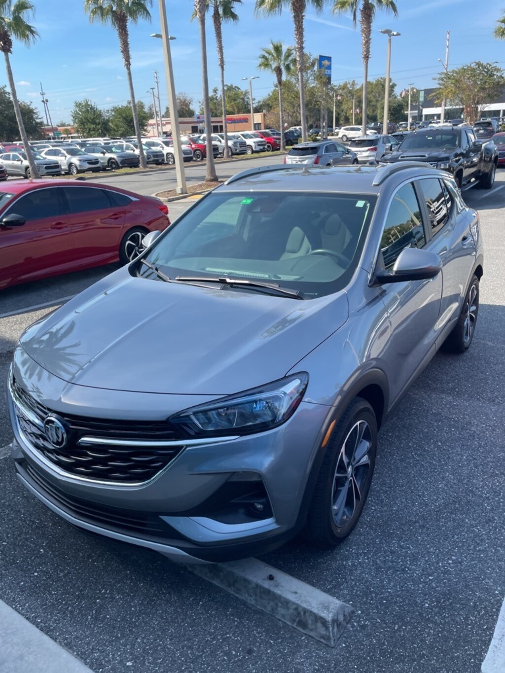 Clean CARFAX. This 2023 Buick Encore GX Select in Moonstone Gray Metallic features: FWD Encore GX Select, 4D Sport Utility, ECOTEC 1.2L Turbo, CVT, FWD, Moonstone Gray Metallic, Ebony With Ebony Interior Accents Cloth, 18" Machined Aluminum Wheels, 2 USB Ports w/Auxiliary Input Jack, 8-Way Power Driver Seat Adjuster, Enhanced Performance 6-Speaker System, Hands Free Power Liftgate, Hands-Free Power Liftgate Package, Heated Driver & Front Passenger Seats, Lane Change Alert w/Side Blind Zone Alert, Preferred Equipment Group 1SD, Radio: 8" Diagonal Buick Infotainment System, Rear Cross Traffic Alert, Remote keyless entry, Safety Package II, SiriusXM Radio, Wireless Apple CarPlay/Wireless Android Auto. CARFAX One-Owner.