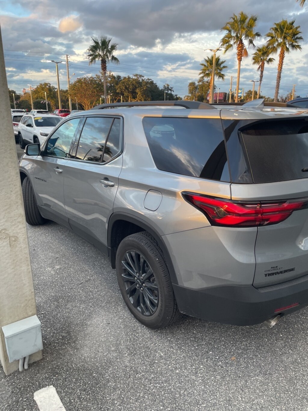 Clean CARFAX. This 2023 Chevrolet Traverse RS in Sterling Gray Metallic features: FWD ONE OWNER, Traverse RS, 4D Sport Utility, 3.6L V6 SIDI VVT, 9-Speed Automatic, FWD, Sterling Gray Metallic, Jet Black/Spice Red Leather, 6-Way Power Front Passenger Seat, 8-Way Power Driver Seat Adjuster, Bose Premium 10-Speaker Audio System Feature, Exterior Parking Camera Rear, Heated Driver & Front Passenger Seats, Heavy-Duty Cooling System, Hitch Guidance w/Hitch View, Power Liftgate, Preferred Equipment Group 2LT, Radio: Chevrolet Infotainment 3 Plus System w/Navi, Remote keyless entry, SiriusXM w/360L, Trailering Assist Guidelines, Trailering Equipment, Wheels: 20" Dark Aluminum. CARFAX One-Owner.