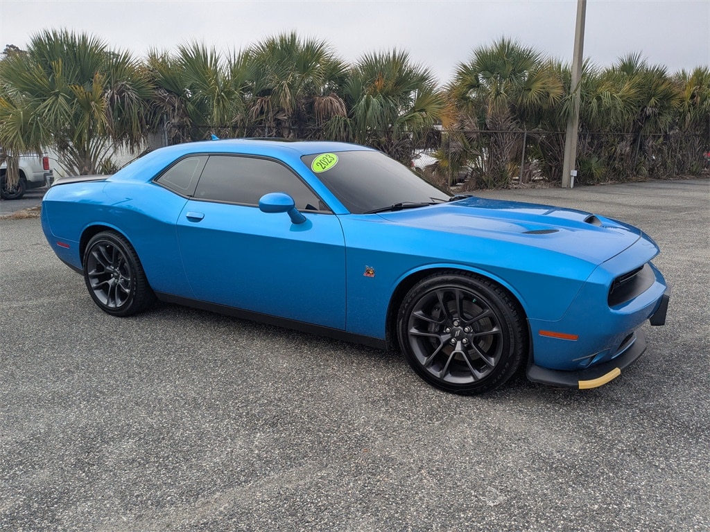 B5 Blue Pearlcoat 2023 Dodge Challenger R/T Scat Pack R/T Scat Pack SRT HEMI 6.4L V8 MDS RWD 8-Speed Automatic 1-Yr SiriusXM Guardian Trial, 4-Wheel Disc Brakes, 4G LTE Wi-Fi Hot Spot, 6 Speakers, 8.4" Touchscreen Display, ABS brakes, Air Conditioning, Alloy wheels, AM/FM radio: SiriusXM, Anti-whiplash front head restraints, Apple CarPlay, Apple CarPlay/Android Auto, Auto-dimming Rear-View mirror, Automatic temperature control, Body Color Exterior Mirrors, Brake assist, Bumpers: body-color, Compass, Compass Gauge, Delay-off headlights, Driver door bin, Driver vanity mirror, Dual front impact airbags, Dual front side impact airbags, Electronic Stability Control, Emergency communication system: SiriusXM Guardian, Exterior Mirrors w/Heating Element, For Details, Visit DriveUconnect.com, For More Info, Call 800-643-2112, Four wheel independent suspension, Front anti-roll bar, Front Bucket Seats, Front Center Armrest, Front dual zone A/C, Front fog lights, Front License Plate Bracket, Front reading lights, Fully automatic headlights, Garage door transmitter, Google Android Auto, GPS Antenna Input, HD Radio, Heated door mirrors, Houndstooth Cloth Performance Seats, Illuminated entry, Integrated Center Stack Radio, Integrated Voice Command w/Bluetooth, Leather Shift Knob, Low tire pressure warning, Media Hub (2 USB, AUX), Outside temperature display, Overhead airbag, Overhead console, Panic alarm, ParkView Rear Back-Up Camera, Passenger door bin, Passenger vanity mirror, Power door mirrors, Power driver seat, Power steering, Power Sunroof, Power windows, Quick Order Package 24G R/T Scat Pack, Radio data system, Radio: Uconnect 4C w/8.4" Display, Rear anti-roll bar, Rear reading lights, Rear seat center armrest, Rear window defroster, Remote keyless entry, Rhombi 2-Pc Wheel Center Cap, Security system, Shark Fin Antenna, SiriusXM Radio Service, SiriusXM Satellite Radio, Speed control, Speed-sensing steering, Split folding rear seat, Spoiler, Sport steering wheel, Steering wheel mounted audio controls, Tachometer, Telescoping steering wheel, Tilt steering wheel, Traction control, Trip computer, USB Host Flip, Variably intermittent wipers, Wheels: 20" x 9.0" Lo Gloss Granite Crystal.