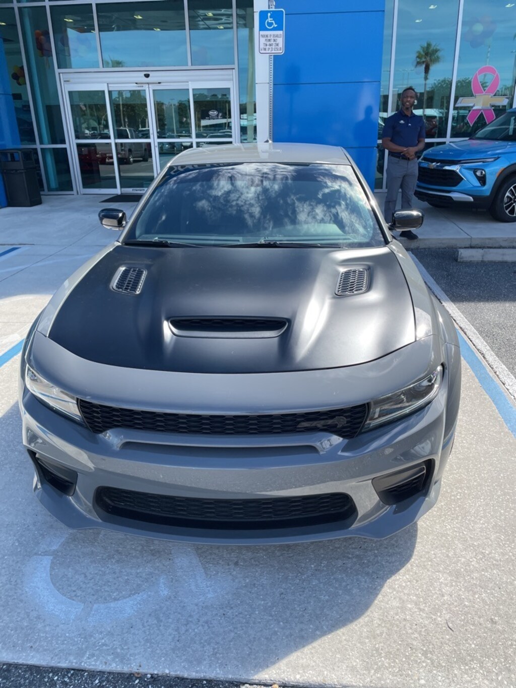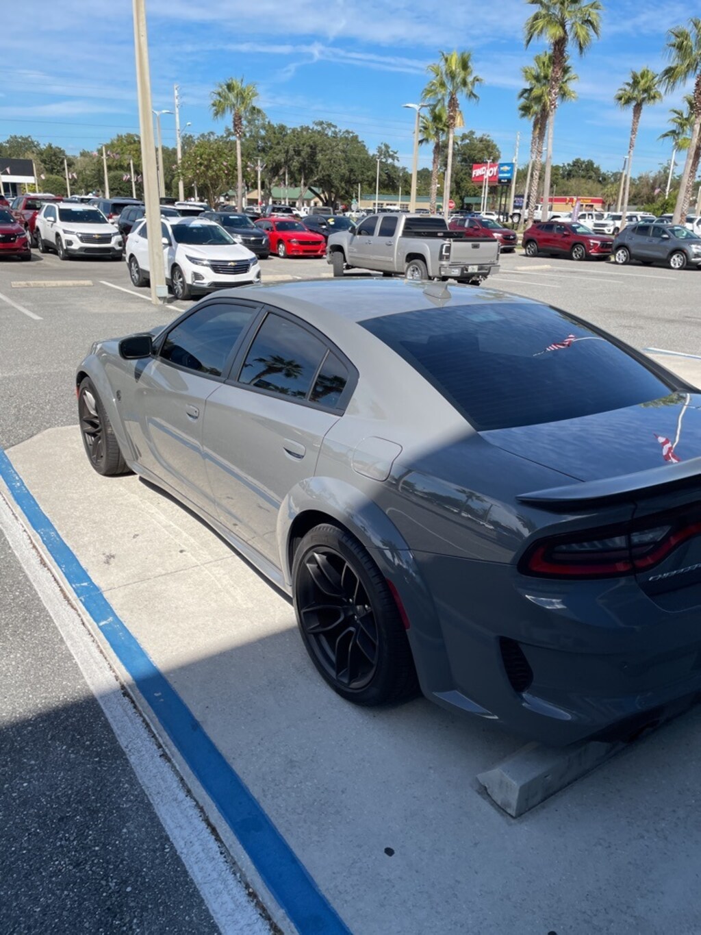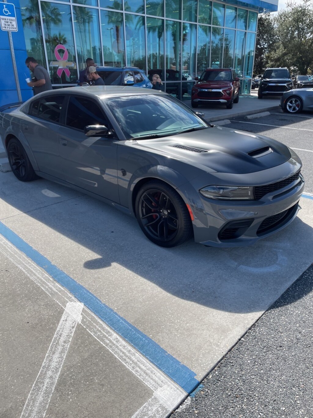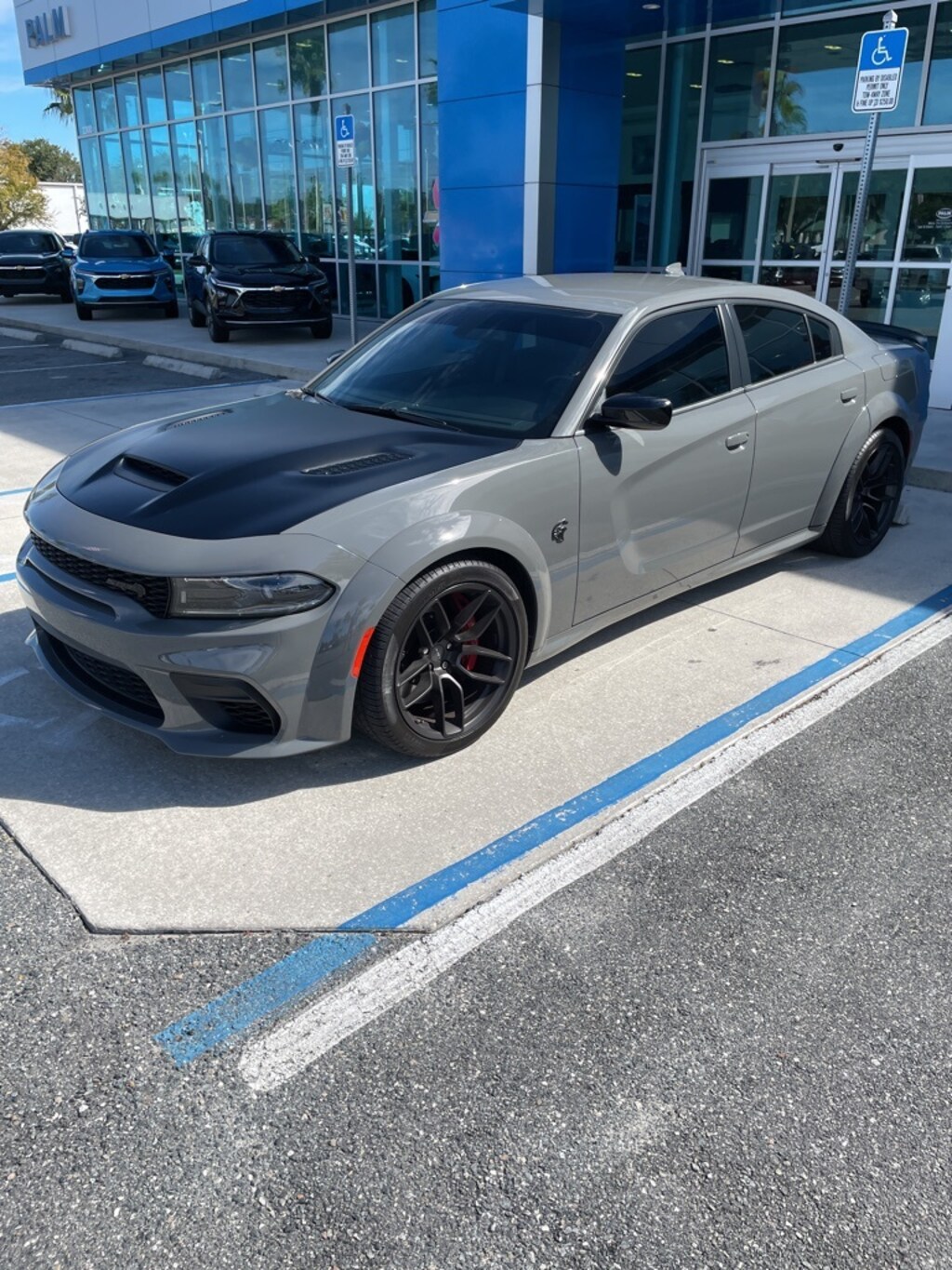 Clean CARFAX. This 2023 Dodge Charger SRT Hellcat Widebody in Destroyer Gray Clearcoat features: RWD Charger SRT Hellcat Widebody, 4D Sedan, 6.2L 8-Cylinder SMPI Supercharged OHV, 8-Speed Automatic, RWD, Destroyer Gray Clearcoat, Black Leather, 1-Yr SiriusXM Guardian Trial, 2-Piece Shark Fin Antenna, 4G LTE Wi-Fi Hot Spot, 5-Year SiriusXM Traffic Service, 5-Year SiriusXM Travel Link Service, 8.4" Touchscreen Display, Apple CarPlay, Black Exterior Badging, Black Seat Belts, Bright Charger Badge, Compass Gauge, Dual Bright Exhaust Tips, For Details, Visit DriveUconnect.com, For More Info, Call 800-643-2112, Google Android Auto, GPS Antenna Input, GPS Navigation, HD Radio, Integrated Center Stack Radio, Integrated Voice Command w/Bluetooth, Jailbreak IP Badge, Media Hub (2 USB, AUX), Navigation & Travel Group, ParkView Rear Back-Up Camera, Quick Order Package 23B SRT Hellcat Widebody Jailbreak, Radio: Uconnect 4C Nav w/8.4" Display, SiriusXM Radio Service, SiriusXM Satellite Radio, SiriusXM Traffic Plus, SiriusXM Travel Link, USB Host Flip, Wheels: 20" x 11" Devil's Rim Granite. CARFAX One-Owner.