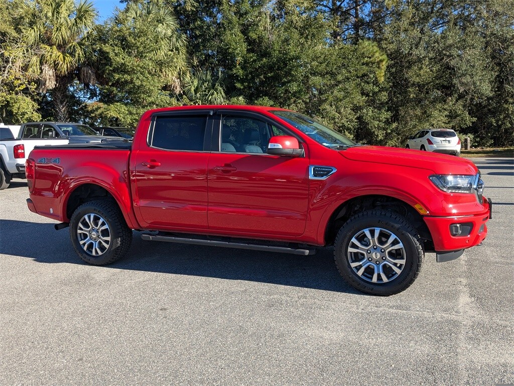 Clean CARFAX. This 2020 Ford Ranger Lariat in Race Red features: 4WD Ranger Lariat, 4D Crew Cab, EcoBoost 2.3L I4 GTDi DOHC Turbocharged VCT, 10-Speed Automatic, 4WD, Race Red, Ebony Leather, Adaptive Cruise Control, Class IV Trailer Hitch Receiver, Equipment Group 500A Base, Exterior Parking Camera Rear, Navigation, Technology Package, Trailer Tow Package, Wheels: 18" Machined Alum w/Stealth Gray Pockets.