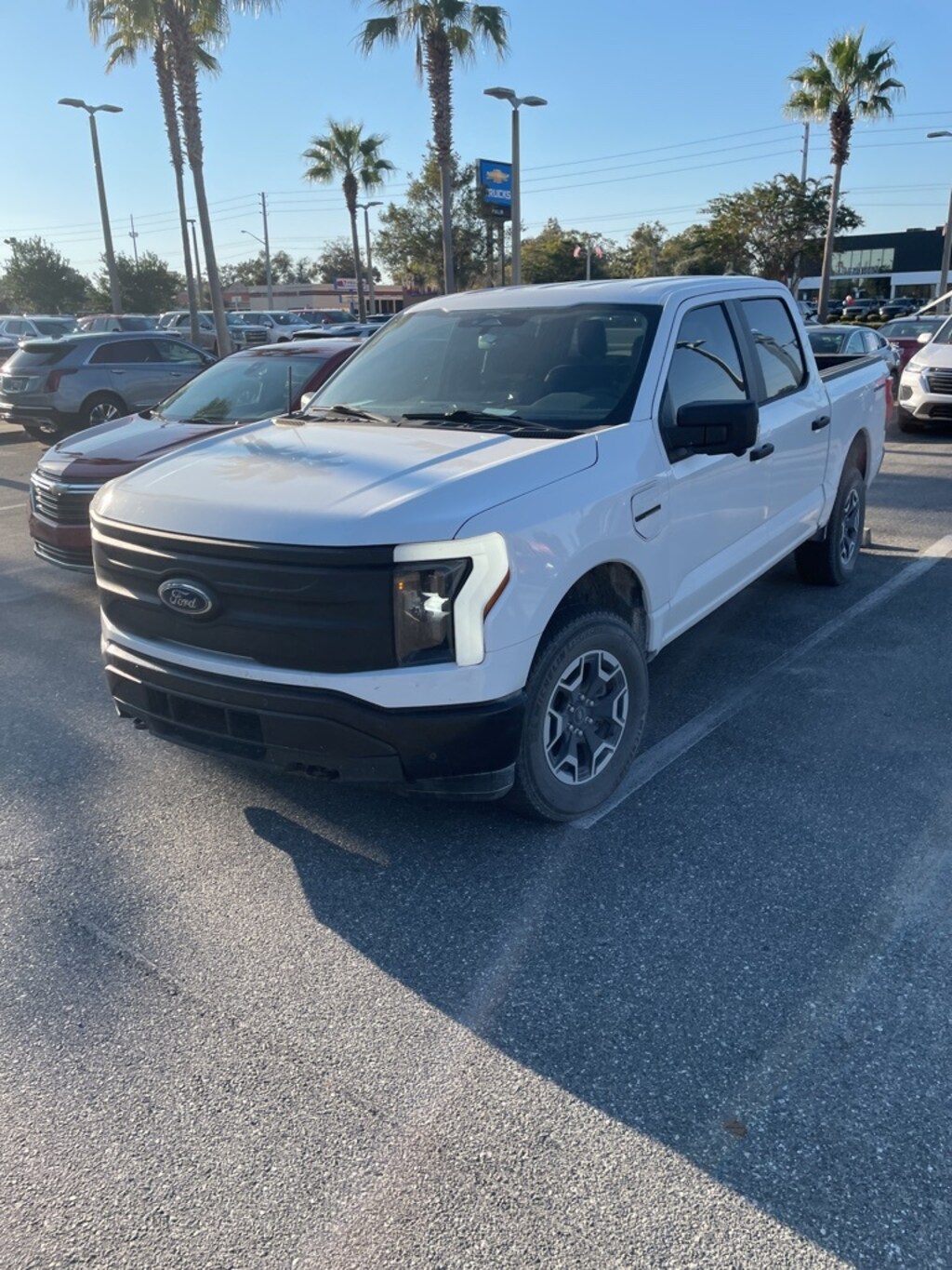 This 2023 Ford F-150 Lightning Pro in Oxford White features: AWD F-150 Lightning Pro, 4D Crew Cab, Electric Motor, Single-Speed Automatic, AWD, Oxford White, Medium Dark Slate Vinyl, 360 Degree Camera, Equipment Group 110A Standard, Forward Sensing System, Manual-Folding Power Glass Heated Mirrors, Pro Trailer Backup Assist, Pro Trailer Hitch Assist, Tow Technology Package, Trailer Brake Controller.