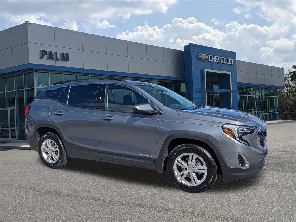 Clean CARFAX. This 2019 GMC Terrain SLE in Satin Steel Metallic features: FWD Terrain SLE, 4D Sport Utility, 1.5L DOHC, 9-Speed Automatic, FWD, Satin Steel Metallic, Jet Black Cloth, 2 USB Data Ports w/Auxiliary Input Jack, 6-Speaker Audio System Feature, 8-Way Power Driver Seat Adjuster, Bluetooth® For Phone, Driver & Front Passenger Heated Seats, Driver Convenience Package, Dual-Zone Automatic Climate Control, Exterior Parking Camera Rear, Power Driver Lumbar Control, Power Programmable Rear Liftgate, Preferred Equipment Group 3SA, Radio: GMC Infotainment Audio System w/7" Display, Remote keyless entry, Remote Start, Roof-Mounted Luggage Rack Black Side Rails, Wheels: 17" x 7" Silver Painted Aluminum.