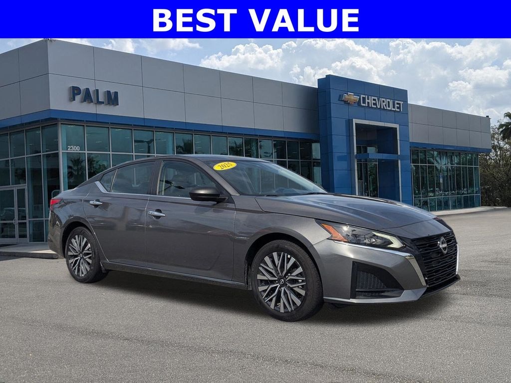 Clean CARFAX. This 2025 Nissan Altima 2.5 SV in Gun Metallic features: FWD Altima 2.5 SV, 4D Sedan, 2.5L 4-Cylinder DOHC 16V, CVT with Xtronic, FWD, Gun Metallic, Charcoal Cloth, 17" Machined Alloy Wheels, Power driver seat, Radio: AM/FM Audio System, Rear Parking Sensors, Remote keyless entry.