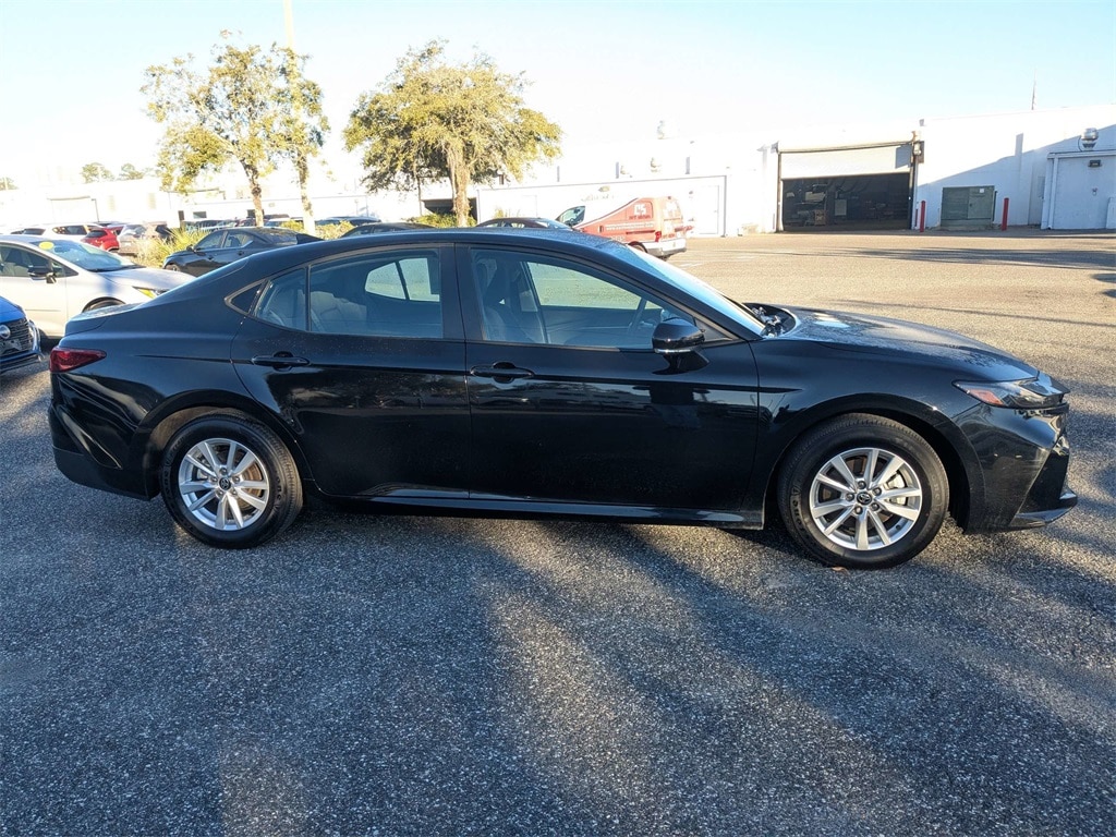 Midnight Black 2025 Toyota Camry LE LE 2.5L 4-Cylinder 16V DOHC FWD eCVT 2.5L 4-Cylinder 16V DOHC, Black Cloth, 4-Wheel Disc Brakes, 6 Speakers, ABS brakes, Air Conditioning, Alloy wheels, AM/FM radio: SiriusXM, Apple CarPlay/Android Auto, Auto High-beam Headlights, Automatic temperature control, Brake assist, Bumpers: body-color, Delay-off headlights, Driver door bin, Driver vanity mirror, Dual front impact airbags, Dual front side impact airbags, Electronic Stability Control, Emergency communication system: Safety Connect (up to 10-year trial subscription), Exterior Parking Camera Rear, Fabric Seat Trim, Four wheel independent suspension, Front anti-roll bar, Front Bucket Seats, Front Center Armrest, Front dual zone A/C, Front reading lights, Fully automatic headlights, Heated door mirrors, Illuminated entry, Knee airbag, Low tire pressure warning, Occupant sensing airbag, Outside temperature display, Overhead airbag, Overhead console, Panic alarm, Passenger door bin, Passenger vanity mirror, Power door mirrors, Power steering, Power windows, Radio data system, Radio: Toyota Audio Multimedia w/8" Touchscreen, Rear anti-roll bar, Rear seat center armrest, Rear side impact airbag, Rear window defroster, Remote keyless entry, Security system, Speed control, Speed-sensing steering, Split folding rear seat, Steering wheel mounted audio controls, Telescoping steering wheel, Tilt steering wheel, Traction control, Trip computer, Turn signal indicator mirrors, Variably intermittent wipers, Wheels: 16" Silver-Finished Alloy, 2.5L 4-Cylinder 16V DOHC, Black Cloth.